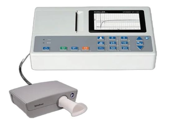 Portable spirometry solution with accurate ultrasound technology, maintenance-free sensor, FVC/SVC/MVV tests, integrated printer, and automatic result
